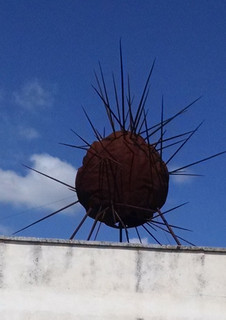Briefly, here is a gallery of shots from a trek I took Monday starting and ending in Castro, described by some as a little Taormina. Castro is indeed one of the lovelier spots in the Salento (on the Adriatic coast). I hiked through some delightful countryside, looped through Marittima (including an amusing monument to the riccio (sea urchin) and then scrambled along the coast). At Acquaviva I took a refreshing dip along with two local women who told me they had taken their first swim on Feb. 25 and expected to continue with daily plunges till Oct. or Nov. The older one reminded me of my mother. A group of local male youth, including a son of the younger woman (grandson perhaps of the other) said they would swim later on when the water warmed up. I then made my way back up to the charming center of Castro and a welcome spritz. I guess this is what tourism studies are about.